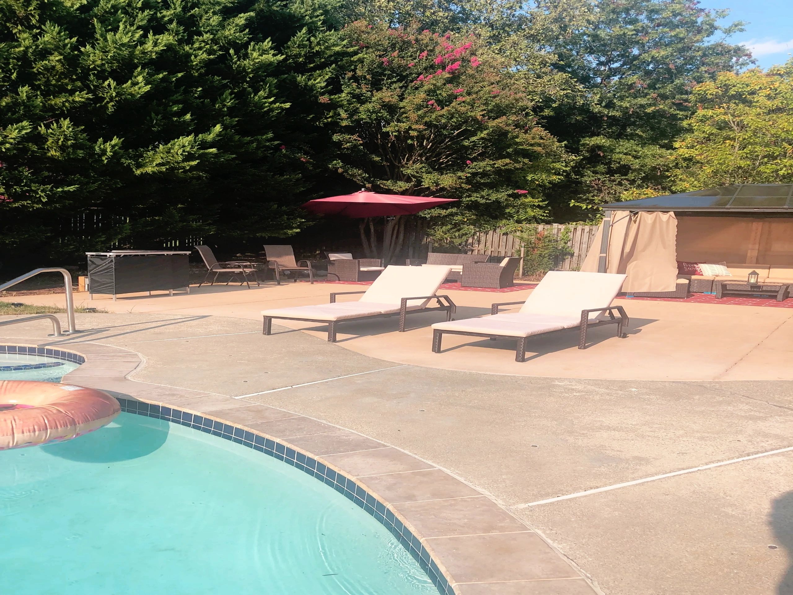 The private backyard oasis features a heated pool over 7 feet deep, perfect for a refreshing swim from mid-April to early October. Relax in the shaded lounge area, fire up the outdoor grill, and enjoy meals at the outdoor dining space, all set in a peaceful and inviting atmosphere. Whether soaking up the sun or unwinding under the stars, this backyard is designed for ultimate comfort and enjoyment.